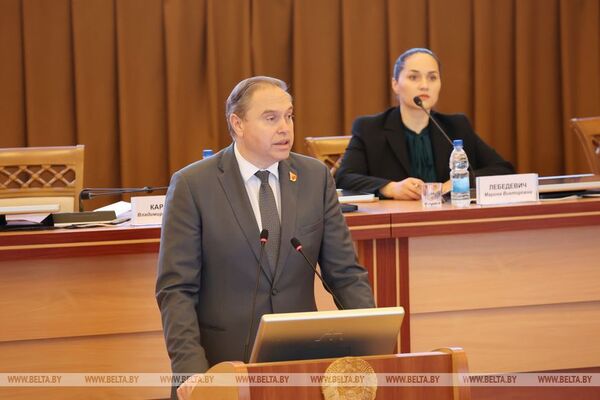 На фото: Председатель Президиума НАН Беларуси выступает с приветственным словом. Источник: БелТА.
