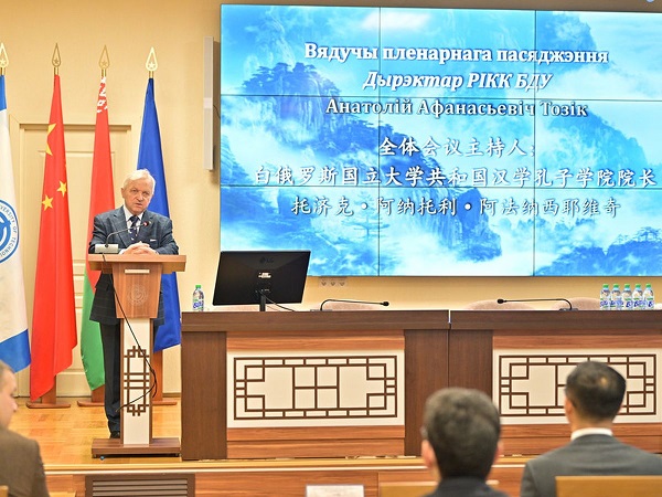 В свою очередь директор Республиканского института китаеведения им. Конфуция БГУ Анатолий ТОЗИК обозначил основную цель научного форума: “Сегодня перед нашей страной стоит задача сформировать национальную школу китаеведения. За 30 лет Беларусь накопила необходимый опыт и показала колоссальный потенциал взаимовыгодного сотрудничества с Китаем. Для углубления этих отношений важно понимать и чувствовать культуру друг друга, знать историю и основные этапы развития государств-партнеров”.