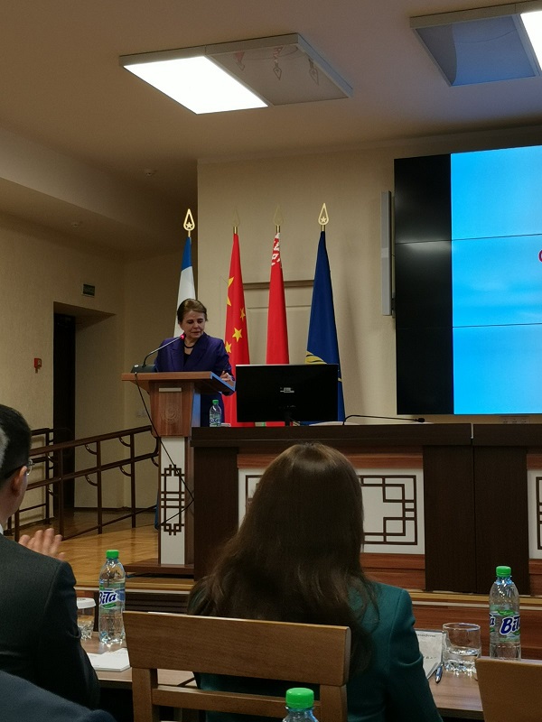 На пленарном заседании выступила руководитель центра мировой экономики Института экономики НАН Беларуси, д.э.н., доцент Татьяна ВЕРТИНСКАЯ с докладом на тему «Транспортное обеспечение развития белорусско-китайских торговых отношений: состояние, проблемы, направления развития».